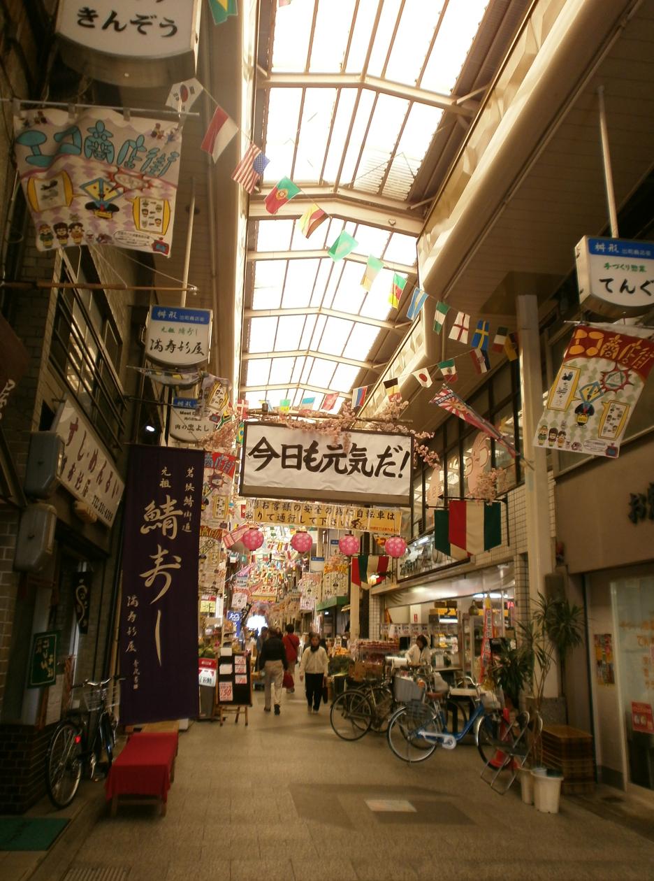 美しい京都の緑を眺めつつ、ホテルから20分ほどの商店街に出る。